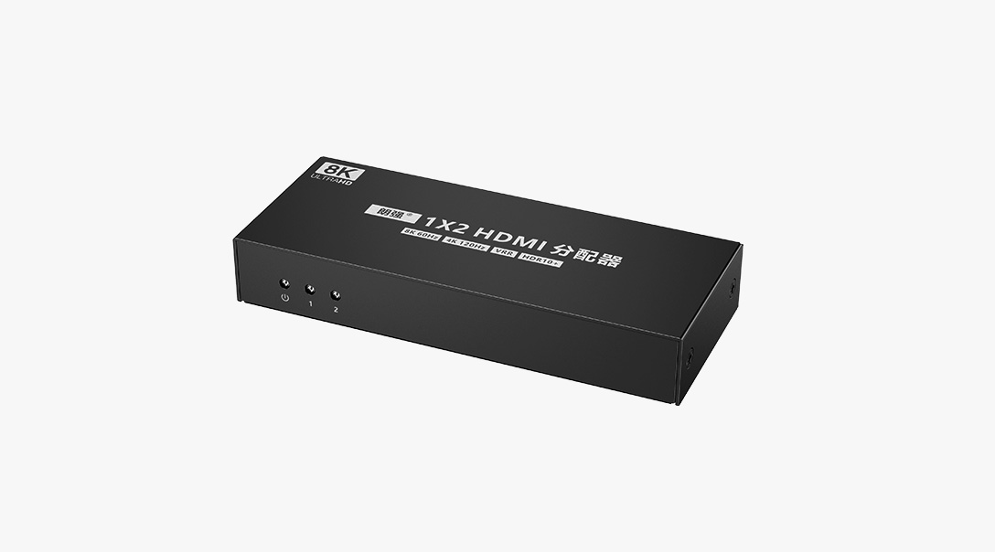 此款产品为1X2 8K HDMI™分配器,可实现1路HDMI™输入信号,分配至2路HDMI™显示 设备输出。采用HDMI™2.1最新标准,视频信号传输高达8K@60Hz/4K@120Hz/ 1080p@240Hz,支持HDR10+,Dolby Vision高动态范围图像及可变刷新率(VRR), 画面显示更细腻、流畅,产品可应用于电视卖场、电影院、户外广告及家庭娱乐等领 域。